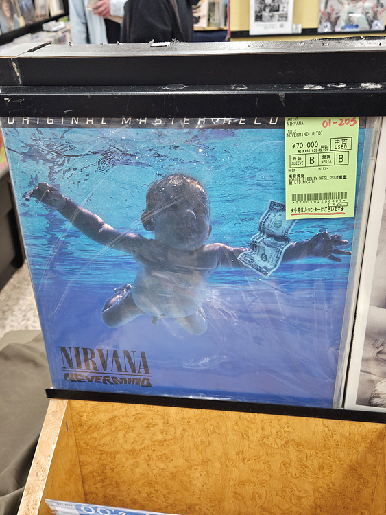 앗! 너바나의 네버 마인드 LP다. 무려 70000엔…. 희소성 때문일까. 허덜덜 하게 비싸다.
